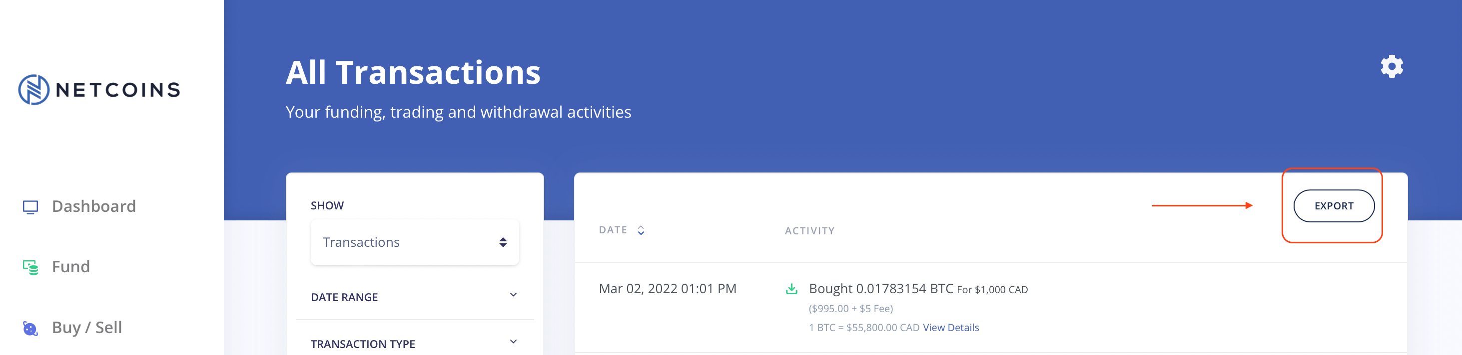 - when you’re at the crypto exchange, look for terms like “export” or “view all transactions” and look for “download all transactions” and “export to csv”.
